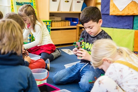 Farbtöne differenzieren, Formen erkennen, Entscheide treffen, winzige Lego-Steinchen auf dünne Lego-Stäbchen drücken, ohne dass die «Äste» wieder abbrechen, das erfordert viele Kompetenzen in Vorstellungsvermögen, räumlichem Denken, Feinmotorik, Ausdauer und nicht zuletzt Sozialverhalten, denn die Kinder helfen einander, teilen das vorhandene Material, und alle entstandenen Bäume werden ja später in der gemeinsam bereits gebauten Stadt «gepflanzt».