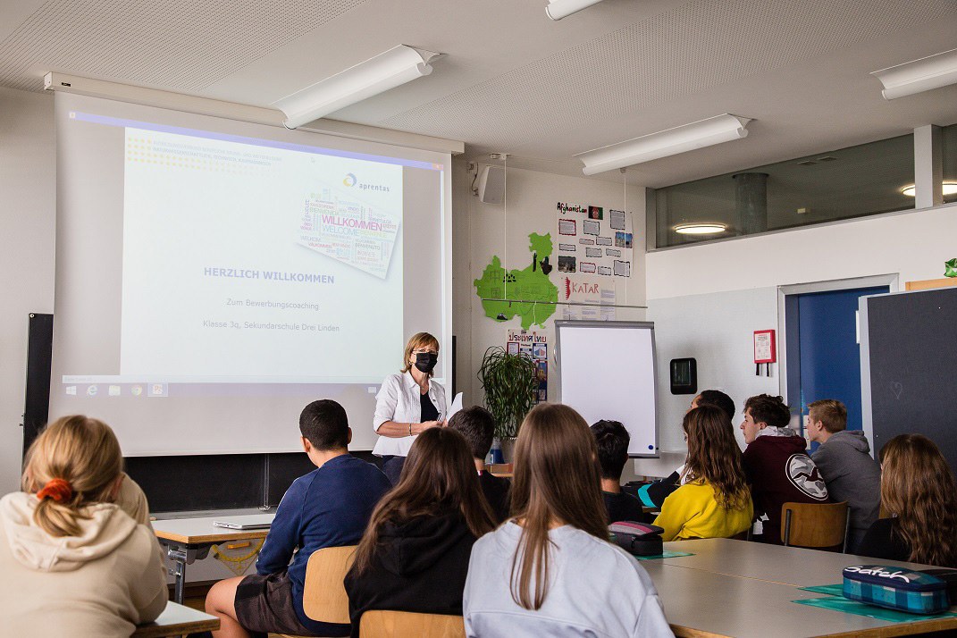 «Vier Sachen sind bei einer Bewerbung entscheidend», erklärt Evelyne Chevrolet von «aprentas»: «Die Zusammenstellung der Unterlagen, die Vorbereitung aufs Gespräch, das Interview selber und zum Schluss das persönliche Debriefing mit sich selbst.» Um diese Fertigkeiten zu erlernen, sind die Business-Coaches aus der Wirtschaft ein nicht nur abwechslungsreicher, sondern auch höchst wirksamer Teil im Berufskundeunterricht für die Jugendlichen.