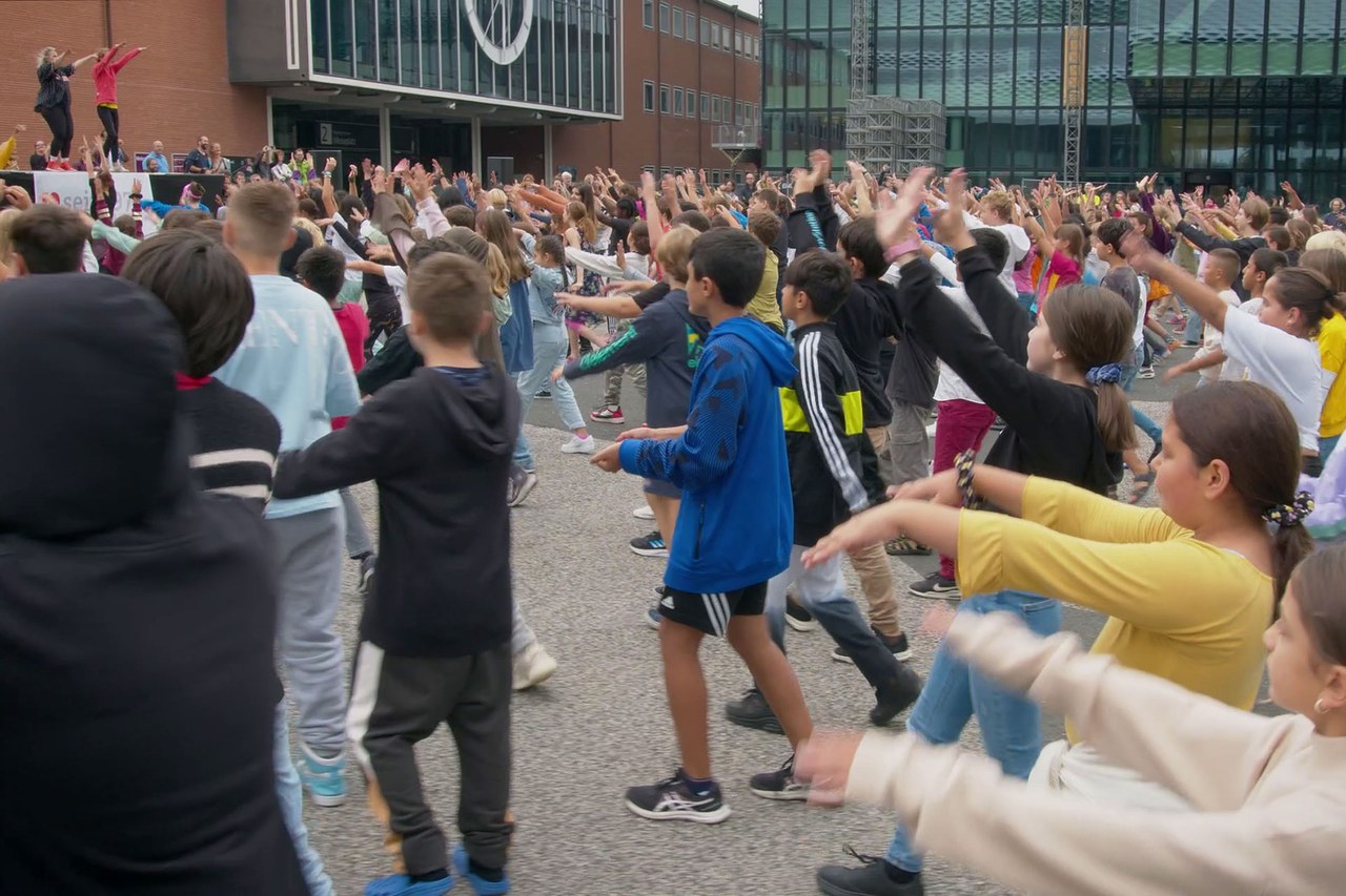 Rund 300 aufgeregte Schülerinnen und Schüler aller Stufen formieren sich Mitte September auf dem Messeplatz. Wochenlang haben sie die Choreographie zum offiziellen J+S-Song «Go Go» von Alessandro Sabato eingeübt. In anderen Kantonen passiert das gleiche. Die Stimmung ist aufgeladen: Ein Mädchen kreischt und winkt wild ins Publikum. Eltern filmen mit ihren Smartphones. Ein vorbeifahrender Passant fällt beinahe von seinem E-Scooter, er kommt gar nicht mehr aus dem Staunen heraus. Eine Aktion ganz im Sinne von J+S.