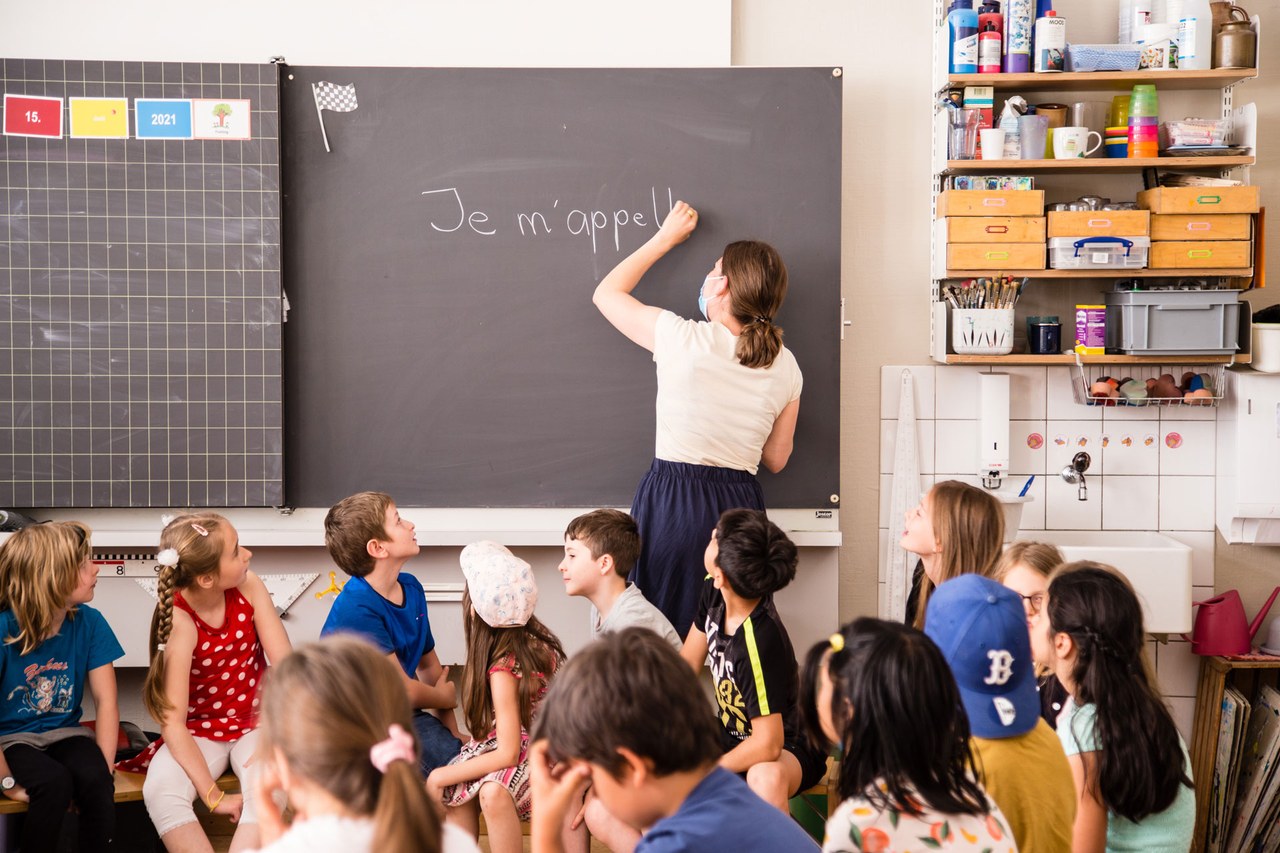 Es galt, das bewährte Programm anzupassen, vieles konnte ja trotzdem stattfinden. Die Zweitklässler durften bei Frau Feuz eine erste Französischlektion erleben, sich auf Französisch vorstellen und ein Namensschild gestalten, das sie dann in die erste richtige Französischstunde nach den Ferien mitbringen sollten. Die Drittklässler fanden sich in ihrer künftig neuen Zusammensetzung bei ihren neuen Klassenlehrpersonen ein und durften schon mal einen Blick auf den neuen Stundenplan werfen. Die Viertklässler erfuhren Wichtiges zum Thema Bewertung, denn ab der 5. Klasse erhalten sie Noten – nicht ganz unwichtig für ihre weitere Schulkarriere. Und: Sie werden neu Englisch haben.