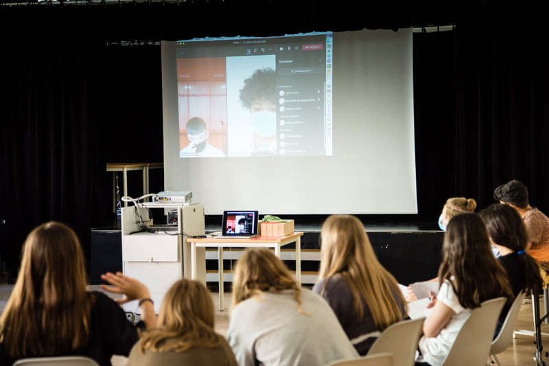 Den Sechstklässlern schliesslich steht ein ähnlich grosser Schritt bevor wie zu Beginn ihrer Schulzeit: Sie kommen in die Sekundarschule und verlassen das vergleichsweise behütete Umfeld ihrer vertrauten Primarschule. Auch sie werden sanft auf die kommende Stufe geschaukelt. In der Aula versammelt, erfahren sie das Wichtigste aus erster Hand, und zwar von vier ehemaligen Thierstein-Schülerinnen und -Schülern, die jetzt verschiedene Sekundarschulen besuchen. Leider geht das nur online via Zoom, was für die online-gewohnten Jugendlichen aber nicht weiter problematisch ist. So werden sie halt live per Beamer über Abläufe, Regeln und Angebote wie Mensa, Tagesstruktur oder Fussballfelder an den Sekundarschulen orientiert. Es gibt auch die Möglichkeit, Fragen zu stellen.