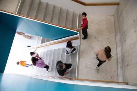 Acht Kinder der Tagesstruktur Lysbüchel haben mithilfe von Architekten eine Führung durch ihr Schulhaus vorbereitet. Im Rahmen von Open House Basel werden die Schülerinnen und Schüler die Tore der Primarstufe Lysbüchel öffnen und ihre Lieblingsorte zeigen.