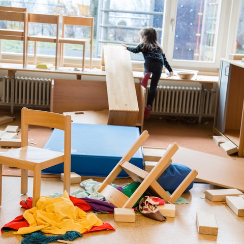 Doch blenden wir zurück. Und zwar ungeschönt. Nachdem die Kinder während zwei Wochen alle Spielsachen begeistert in Schachteln verpackt, Regale geleert und Schubladen ausgeräumt hatten, machte sich erst mal Ernüchterung breit. Die entstandene Leere überforderte die meisten Kinder. Ratlosigkeit und Langeweile prägten endlos lange Kindergarten-Morgen. Nach der ersten Woche hätten die beiden Kindergartenlehrpersonen Rebecca von Burg und Sabine Nimeley das Projekt am liebsten abgebrochen. Frustriert mussten sie feststellen, dass die Kinder nichts mit der Leere respektive der neuen Freiheit anzufangen wussten – ausser über Tische zu rennen und von Simsen zu springen. «Andere sind tagelang nur rumgestanden und rumgesessen und haben gewartet, bis es endlich 12 Uhr ist», sagt Rebecca von Burg, die es selber kaum ausgehalten hat, den Gelangweilten keine Spielideen anbieten zu dürfen. «Was machst du denn zuhause, wenn dir langweilig ist?», fragte sie ein maulendes Mädchen. Die Antwort: «Dann spiele ich etwas auf dem iPad.»