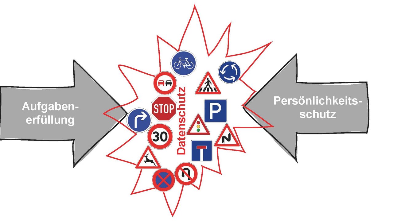 In der Schulpraxis führt dies dazu, dass sich Lehrpersonen, was den Datenschutz angeht, wohl oder übel immer im Spannungsfeld zwischen staatlicher Aufgabenerfüllung (Bildungsauftrag) und Persönlichkeitsschutz bewegen. Letzterer ist auf Verfassungsebene als Grundrecht auf informationelle Selbstbestimmung verankert. Dieses darf nur eingeschränkt werden, wenn es dafür im öffentlichen Interesse eine Rechtsgrundlage gibt und eine solche Einschränkung verhältnismässig ist.