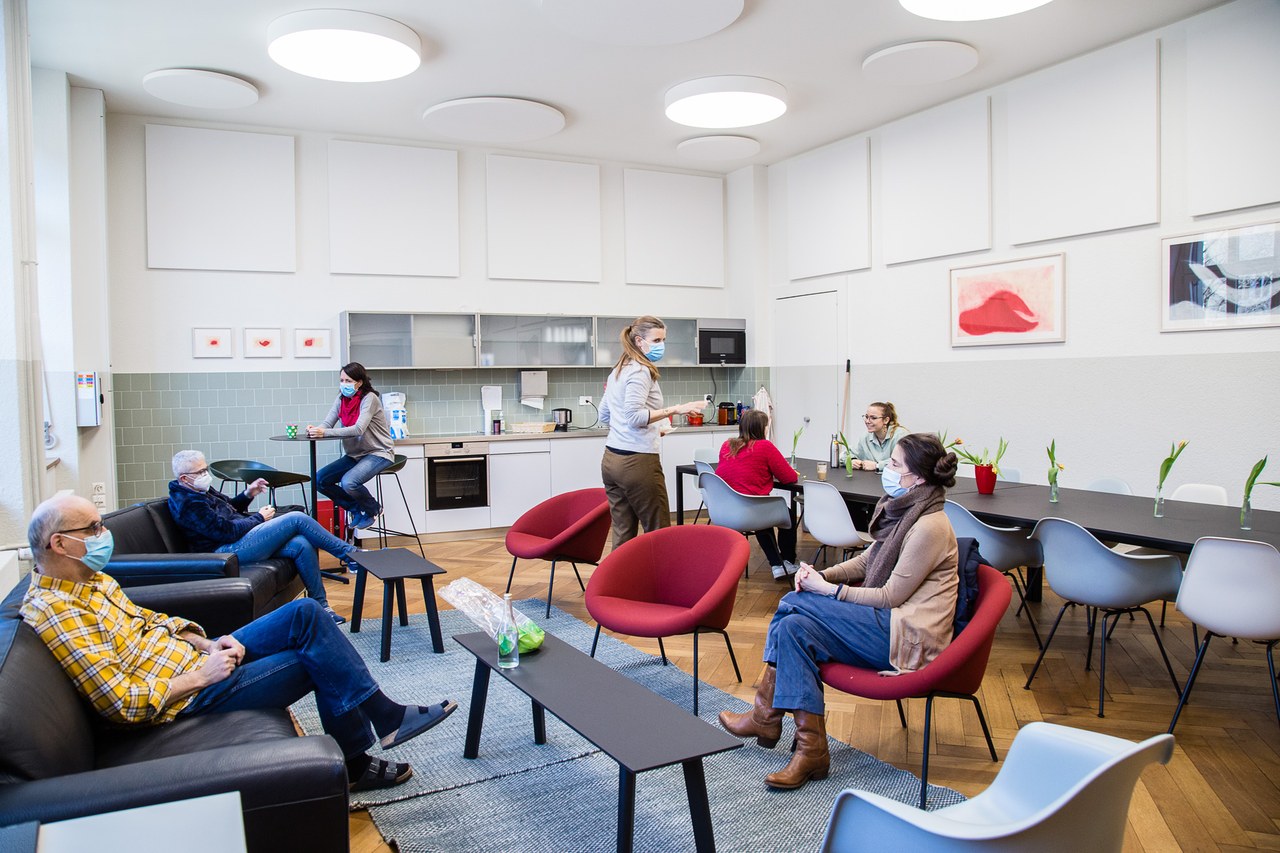 … wir am Standort Theodor zwar auf mehrere Schulhäuser verteilt sind, aber trotzdem ein Team bilden. Wir sind 74 Lehrpersonen, und es besteht auch schulhausübergreifend grosse Offenheit und Toleranz. Wir können uns aufeinander verlassen. Hat man zum Beispiel ein Problem mit dem Beamer, ist fast sicher jemand da, der einem hilft. Es ist generell ein Geben und Nehmen. Der Standort ist ideal. Ob zum Münster, zum Theater oder in die Langen Erlen … wir können fast überallhin zu Fuss gehen. Das Quartier ist spannend, aber auch sehr herausfordernd. Zwischen dem oberen Wettsteinquartier bis zur Claramatte gibt es «allergattig Lüt» mit ganz vielfältigen Ansprüchen an die Schule. Wir sind ein sehr durchmischter Standort mit vielen Nationalitäten und Familien mit sehr unterschiedlichem Bildungshintergrund. Das ist nicht immer einfach, aber interessant.