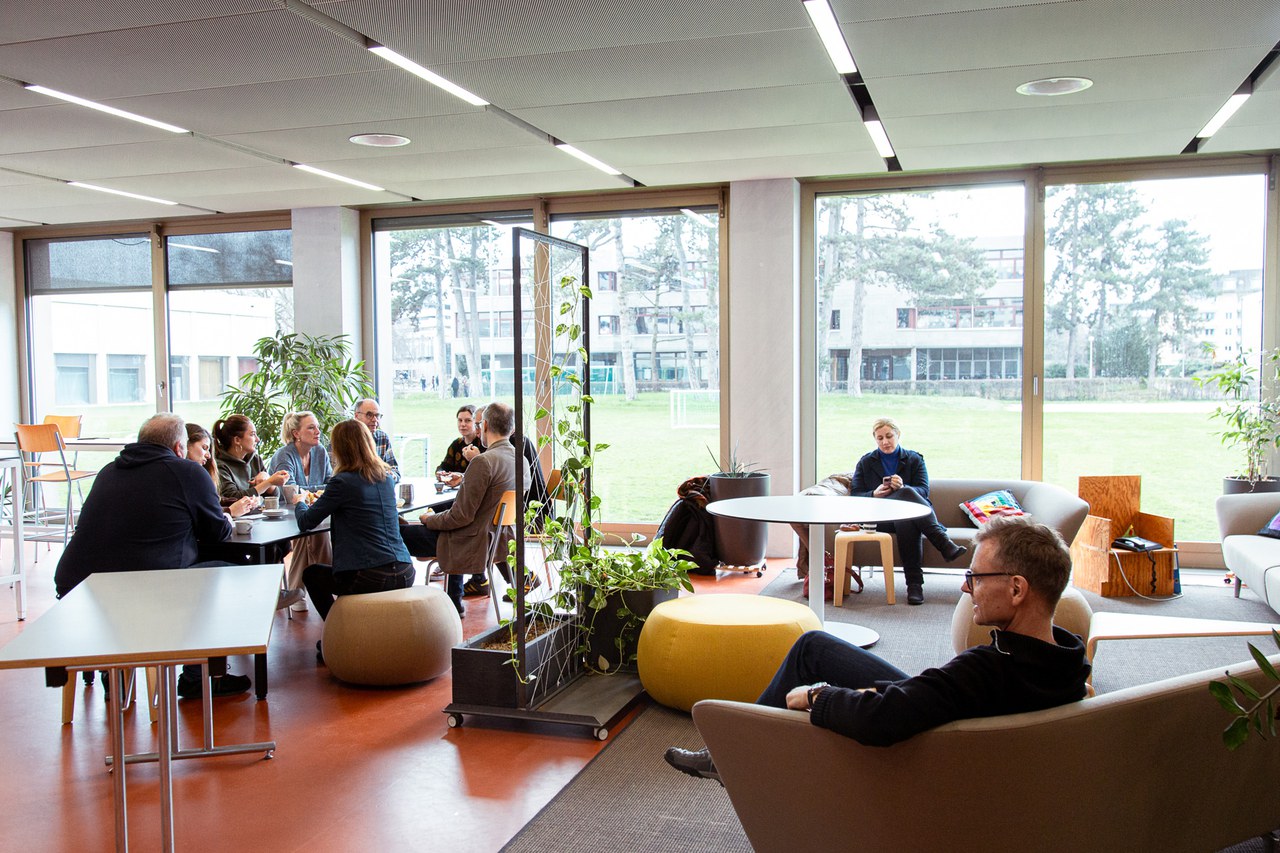 … wir im Ateliersystem unterrichten dürfen. Wir haben neun Ateliers mit je rund 60 Schülerinnen und Schülern. In diesen sind die Jugendlichen durchmischt, unabhängig von der Stufe und ihrem Leistungszug. Für das soziale Miteinander ist das von Vorteil. Die insgesamt 520 Schülerinnen und Schüler unterstützen sich gegenseitig in der dreijährigen Sekundarschullaufbahn. Auch bei den Lehrpersonen finden während der Atelierstunden wertvolle Begegnungen statt. Im Sandgruben sind wir dadurch weniger als Einzelkämpferinnen und Einzelkämpfer unterwegs. Dieser Austausch ist Gold wert, wenn man lange in diesem Beruf bleiben will. Die modernen und offenen Räumlichkeiten mit ihren grossen Glasscheiben stehen sinnbildlich für die gelebte Offenheit an diesem Standort und dienen gleichzeitig zur Qualitätskontrolle, da so eine optimale Transparenz gewährleistet ist. Auch dass die Tagesstruktur im Schulhaus integriert ist, schätzen wir sehr. Und natürlich unser grosses Lehrpersonenarbeitszimmer. Hier können wir in Ruhe vorbereiten.