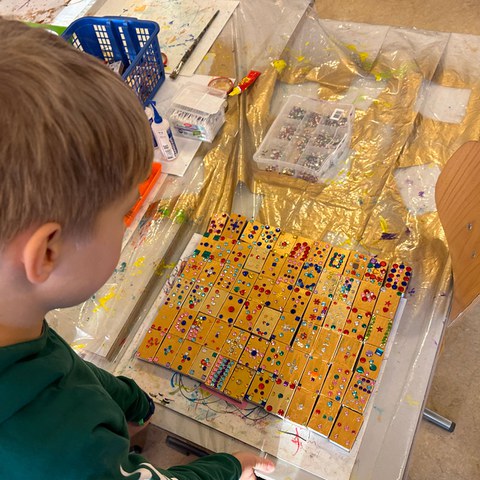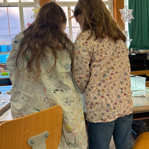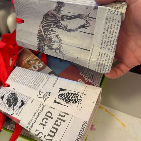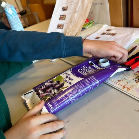 Die Lehrpersonen dieser beiden Klassen nehmen den Markt zum Anlass für eine gemeinsame Kreativwoche, in der neben kleinen Weihnachtsgeschenken mit Blick auf die Fasnacht gleich auch noch Larven kaschiert werden. Eine Arbeit, die im normalen Schulalltag kaum Raum findet. «Mit Blick auf die Umweltwochen im Herbst, wo es um Nachhaltigkeit ging, betreiben wir hier nach Möglichkeit Upcycling», erklärt Jenny Furger, Klassenlehrerin der 3a. Leere Getränkekartons werden zu Portemonnaies verwandelt, aus Zeitungspapier entstehen kunstvolle Geschenk-Säckli und Altglas beginnt in Form von Windlichtern zu leuchten.