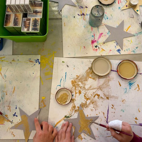 «Ich nehme glaub doch lieber warme Farben», entscheidet eine der Drittklässlerinnen der Unterstufe des Neubadschulhauses, legt das dunkelblaue Seidenpapier zur Seite und greift zu Gelb und Orange. Bunte Schnipsel werden sorgfältig auf ein ausgedientes Konfitürenglas geklebt, das so ein zweites Leben als Windlicht bekommt. Die Klassen 3a und 3b kleben, schneiden und falten für den Weihnachtsmarkt. Er findet in diesem Jahr zum zweiten Mal auf dem Pausenplatz der Primarschule Neubad statt.