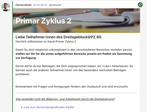 Die Fachexpertinnen und Fachexperten des PZ.BS haben Material rund ums Thema Unterrichten mit digitalen Medien in einem Microsoft Team aufbereitet. In der Lernlandschaft finden Sie Unterrichtsideen, Links und Artikel sowie Tipps zu Tools und Unterlagen zum Erwerb von digitalen Basiskompetenzen mit dem eduBS-Book (z. B. wie benutze ich den Stift, MS 365 kennenlernen, eduBS-Dienste kennenlernen). Erstellt wurde die Lernlandschaft für eine Veranstaltung für die Volksschulen im Rahmen des Dreitageblocks 2023. Sie steht allen offen, die über eine eduBS-Adresse verfügen.