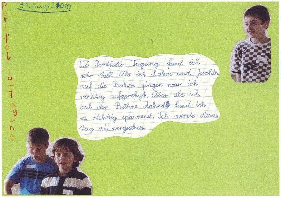 Die Tagung entstand in Zusammenarbeit des pädagogischen Zentrums BS, der FHNW und des Internationalen Netzwerks Portfolio (INP). Dem Einführungsreferat zu den Fundamenten der Portfolioarbeit folgte der Portfoliomarkt, an dem Kinder den Gästen Ihre Arbeiten zeigten und erläuerten. Den Abschluss bildete ein Podium, das zeigte, dass schulische Portfolioarbeit auf sämtlichen Schulstufen sinnvoll eingesetzt werden kann.