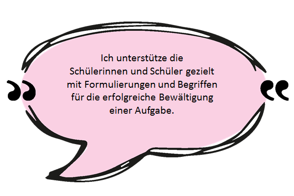 Hier kann die Lehrperson mit einem passenden Angebot von auf Alter und Niveau abgestimmten sprachlichen Bausteinen den fachlichen Spielraum der Schülerinnen und Schüler gezielt erweitern.