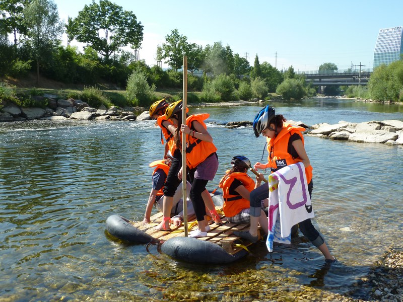 Die SuS erfahren Spannendes über die frühere Flösserei, bauen in Gruppen Flosse und befahren damit die Birs.